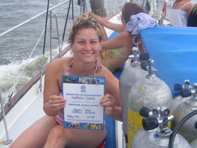 Ein Haufen Glueck nach erfolgreichem Tauchgang im Riff. Sogar mit Teilnehmerurkunde :)